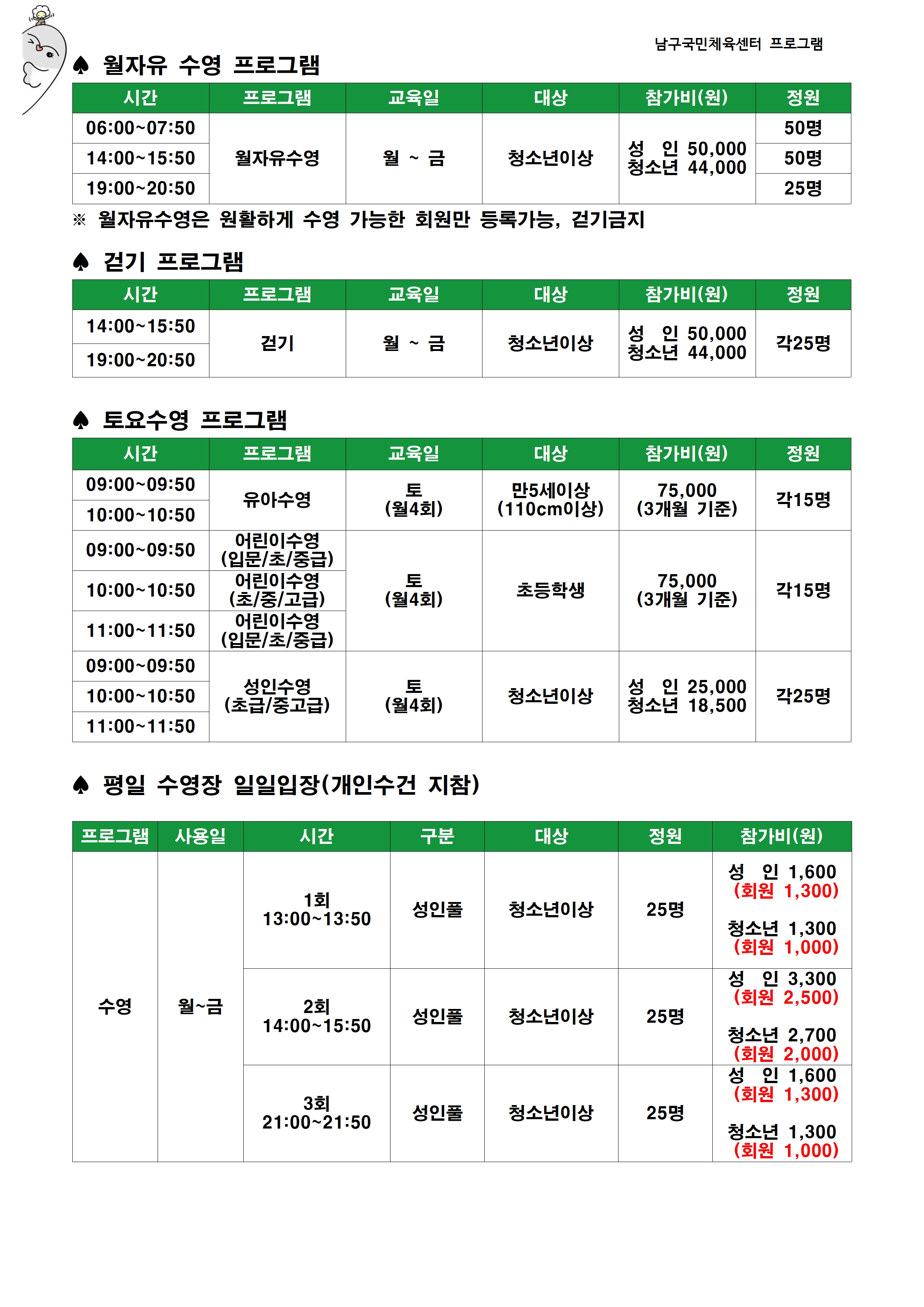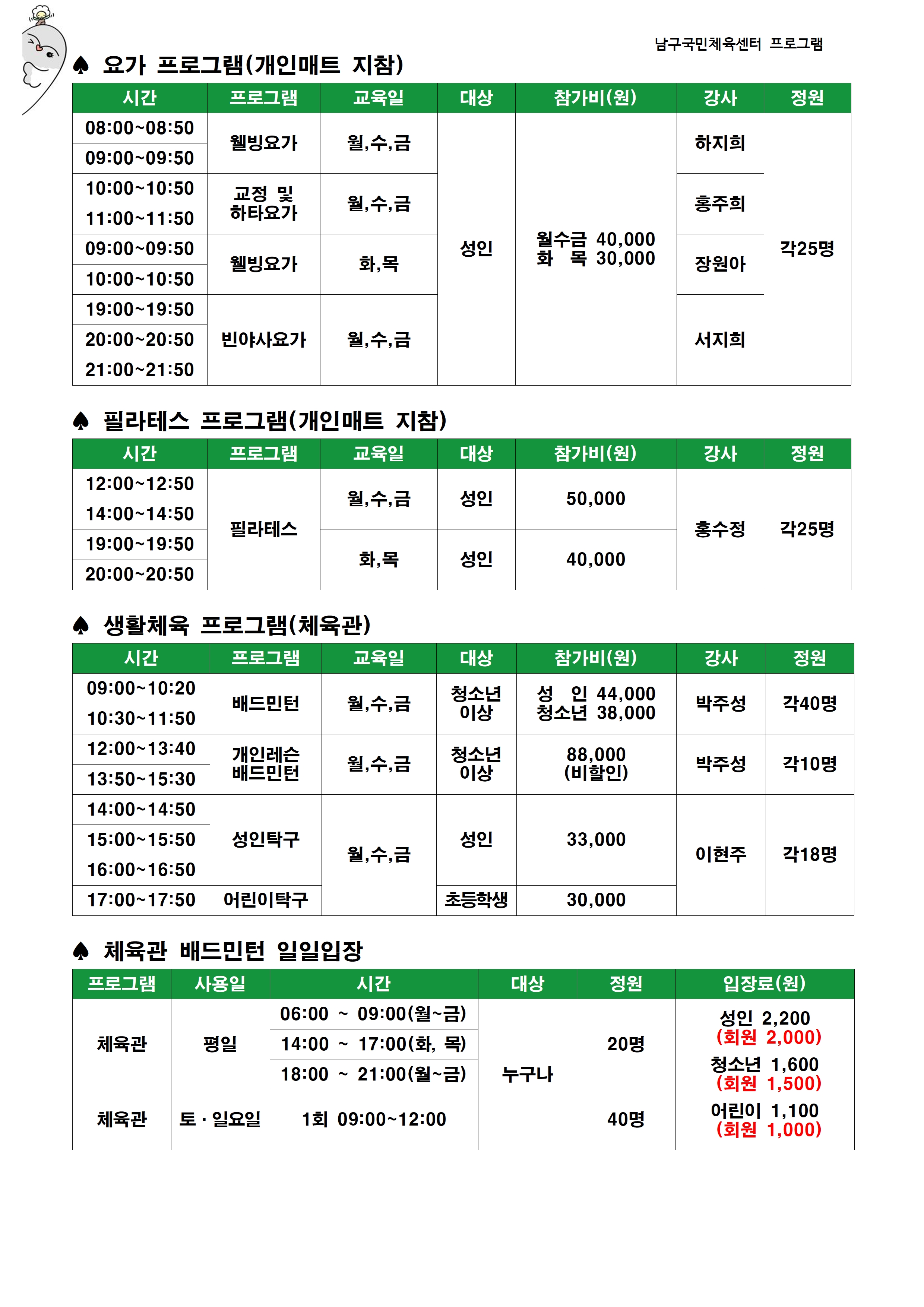 각 강좌는 선착순으로 접수·마감하며, 강좌 개강에 필요한 최소 인원에 미달할 경우 폐강될 수 있습니다.