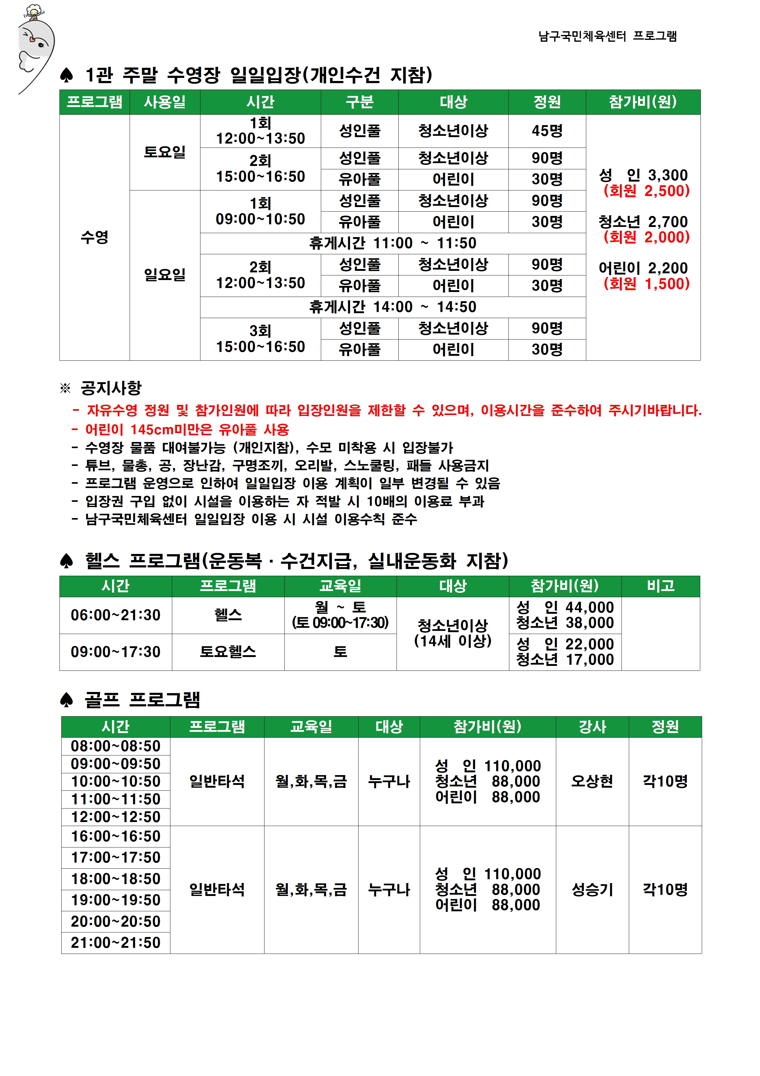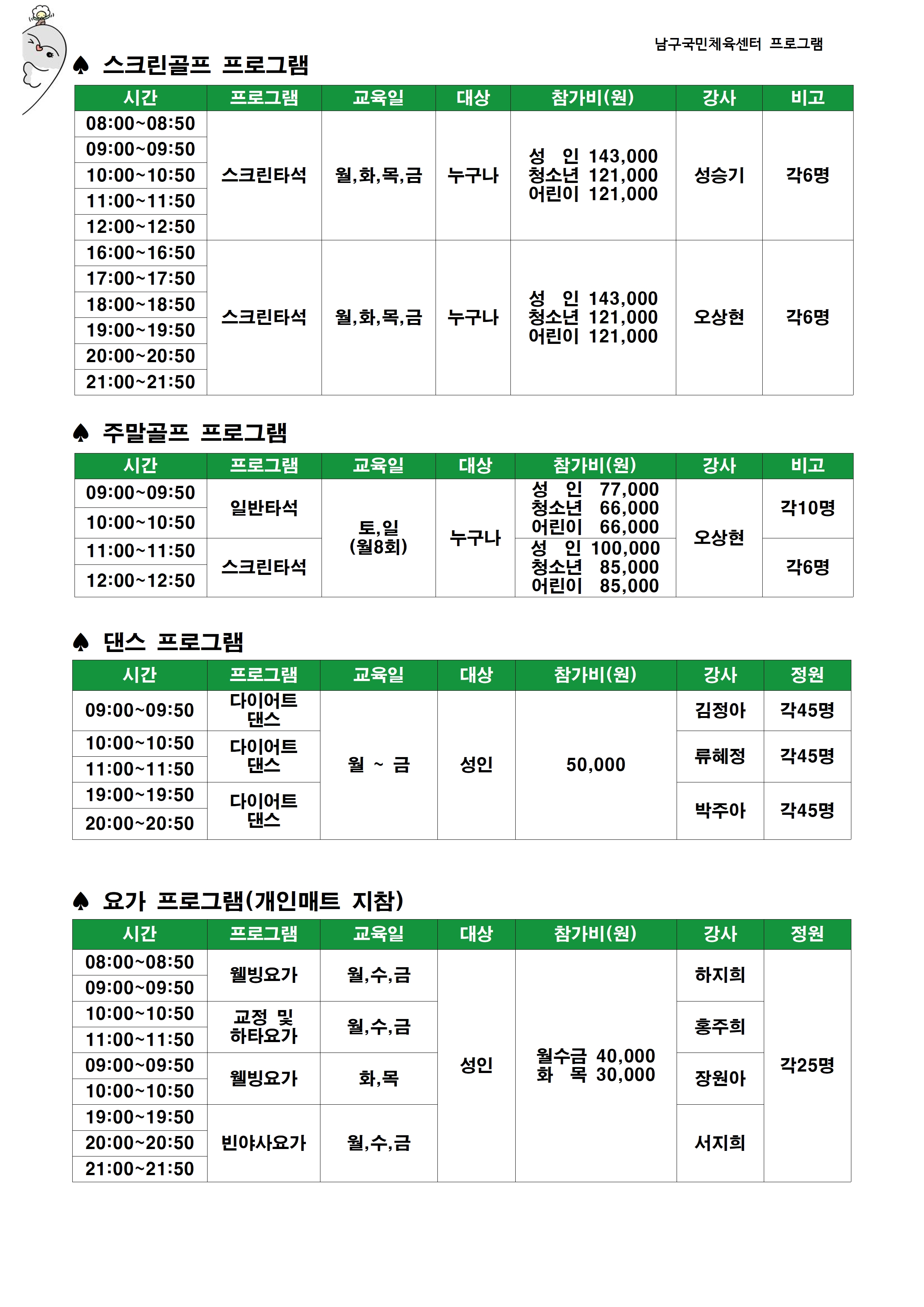 일일프로그램안내