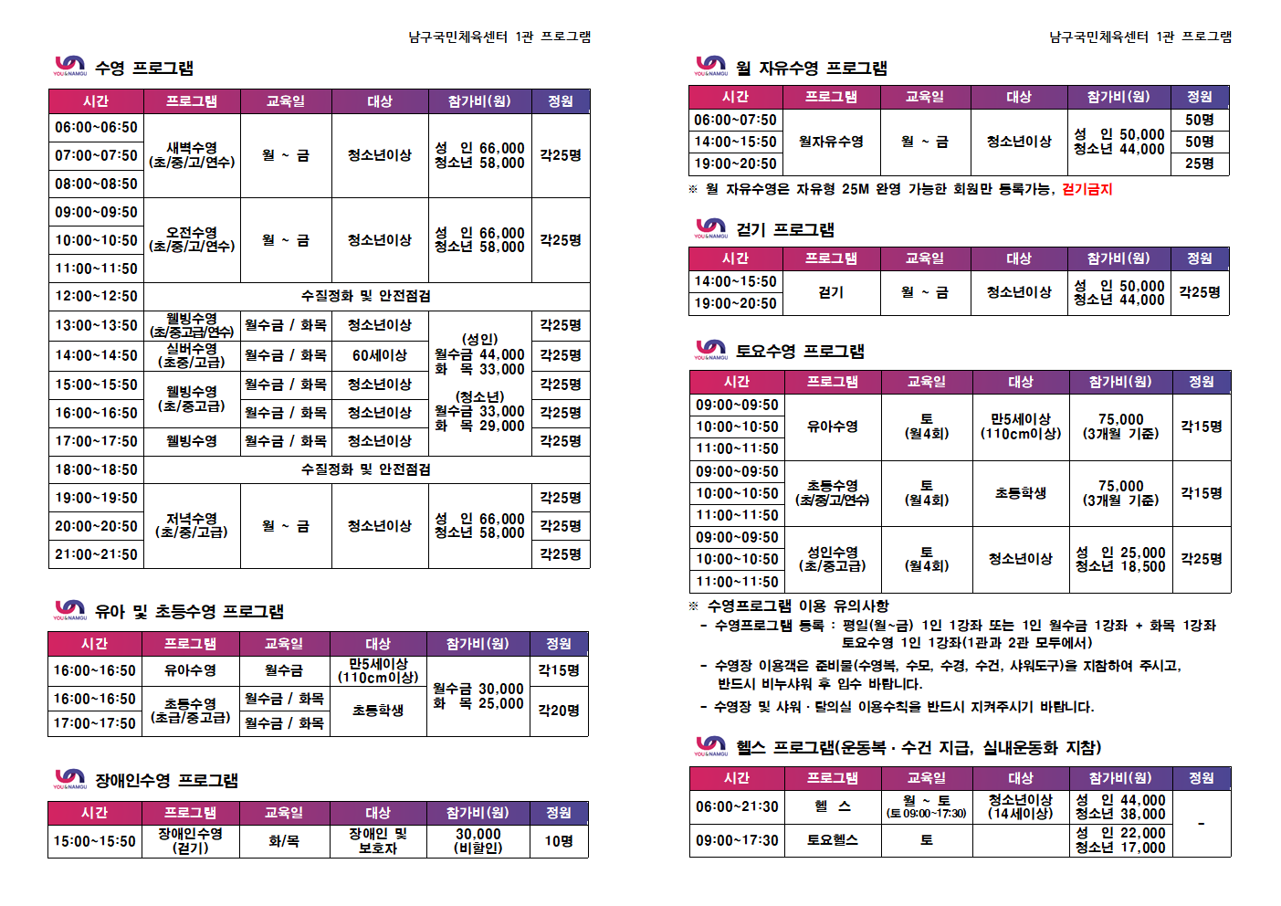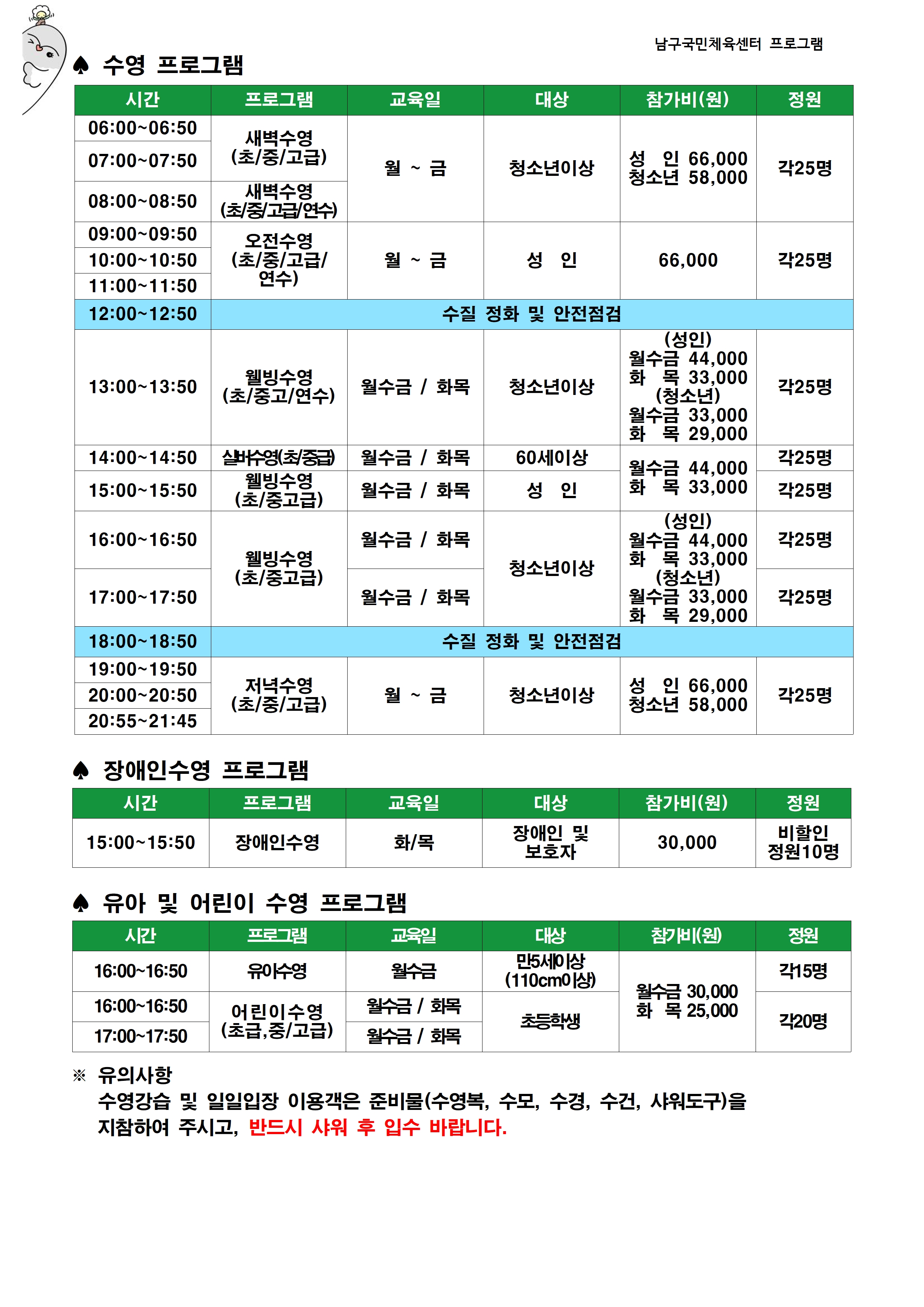 각 강좌는 선착순으로 접수·마감하며, 강좌 개강에 필요한 최소 인원에 미달할 경우 폐강될 수 있습니다.