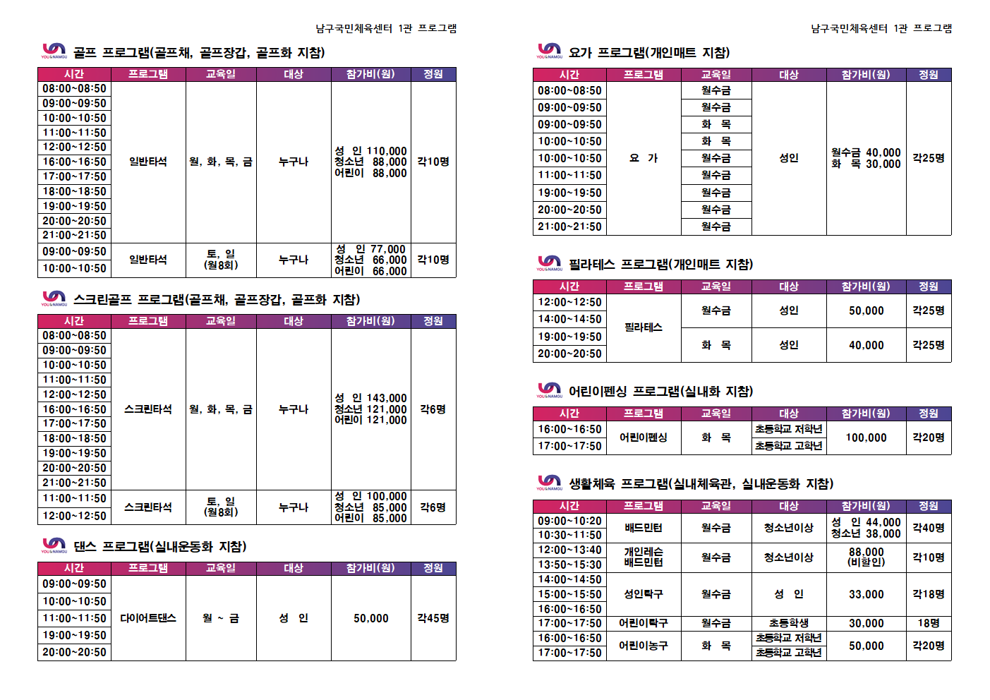 일일프로그램안내