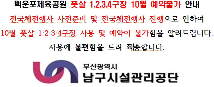 백운포체육공원 풋살구장 10월 사용불가 안내