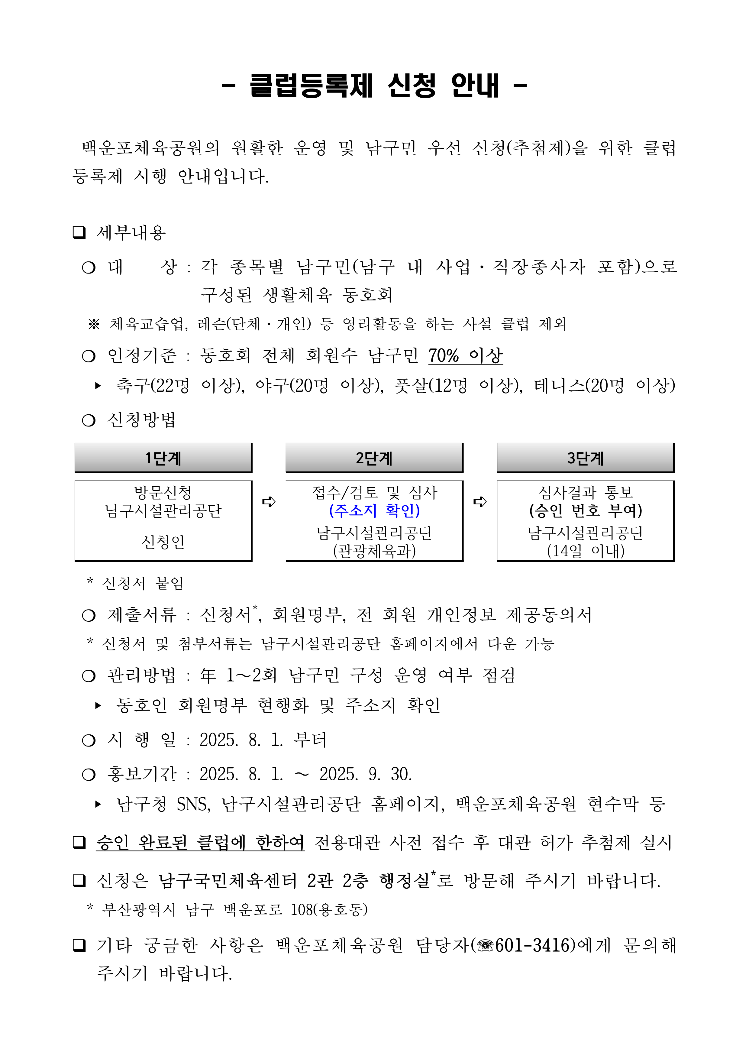 남구민 클럽등록제 안내